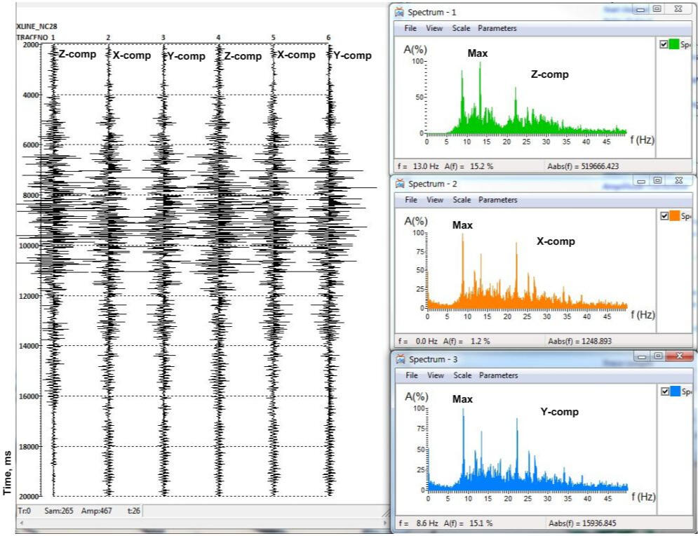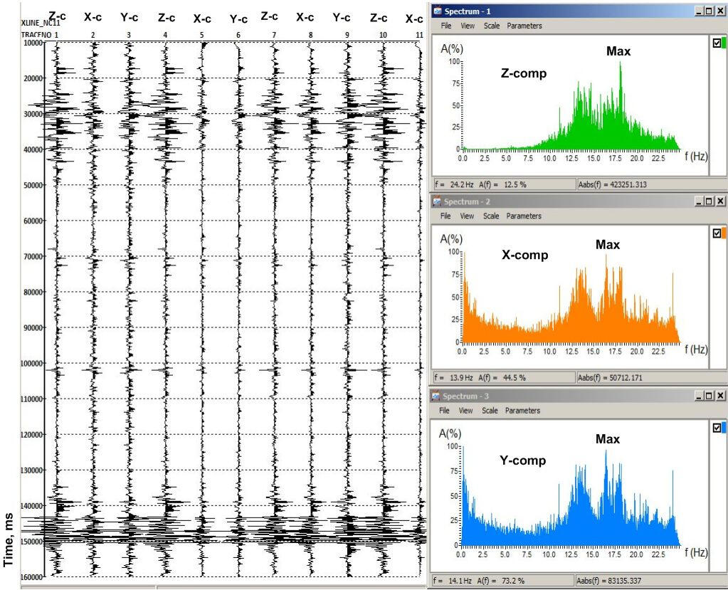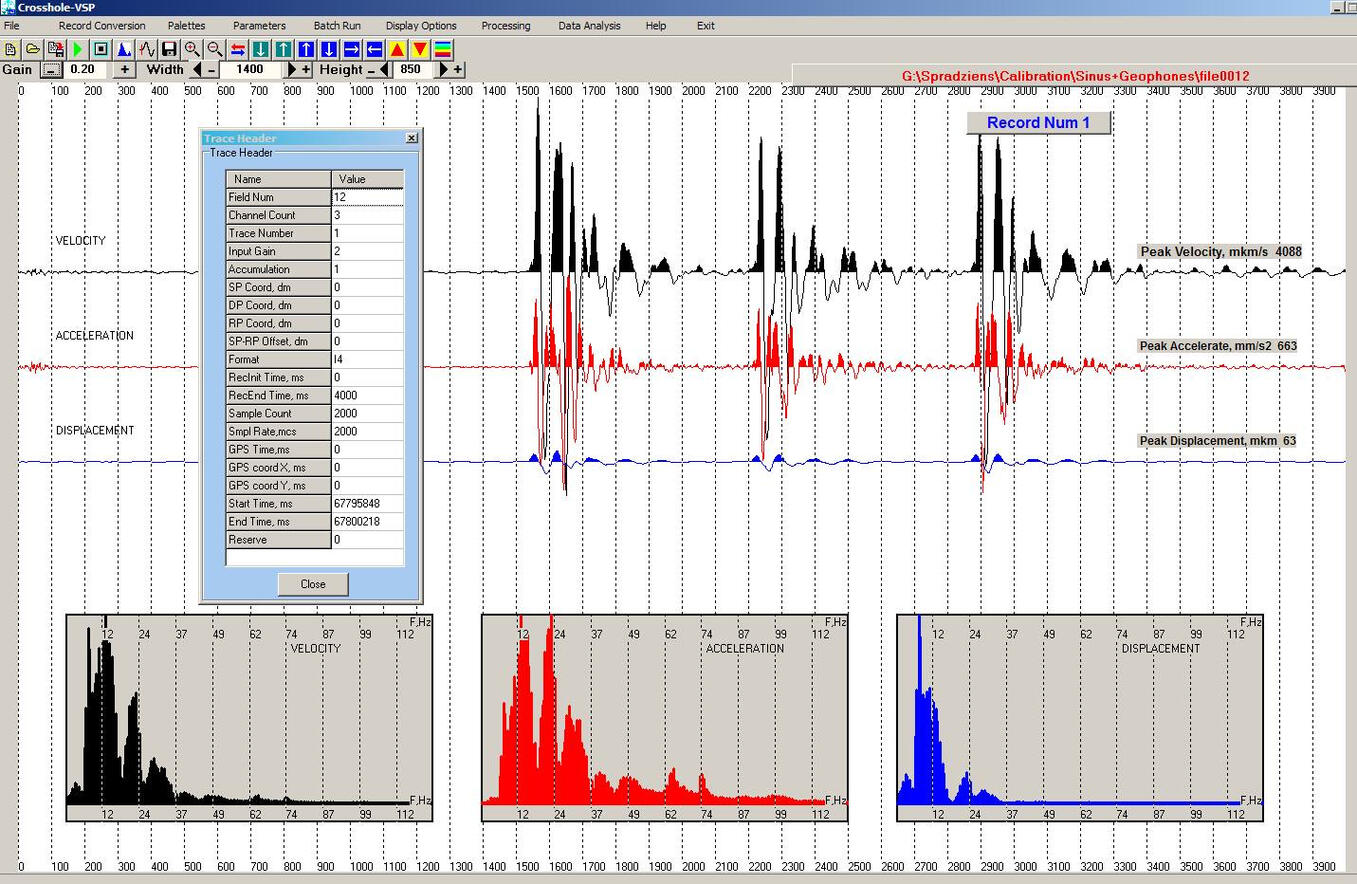 Ierakstīto signālu amplitūdu un spektrālā sastāva analīze ar reverstas VSP