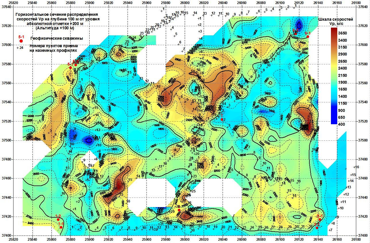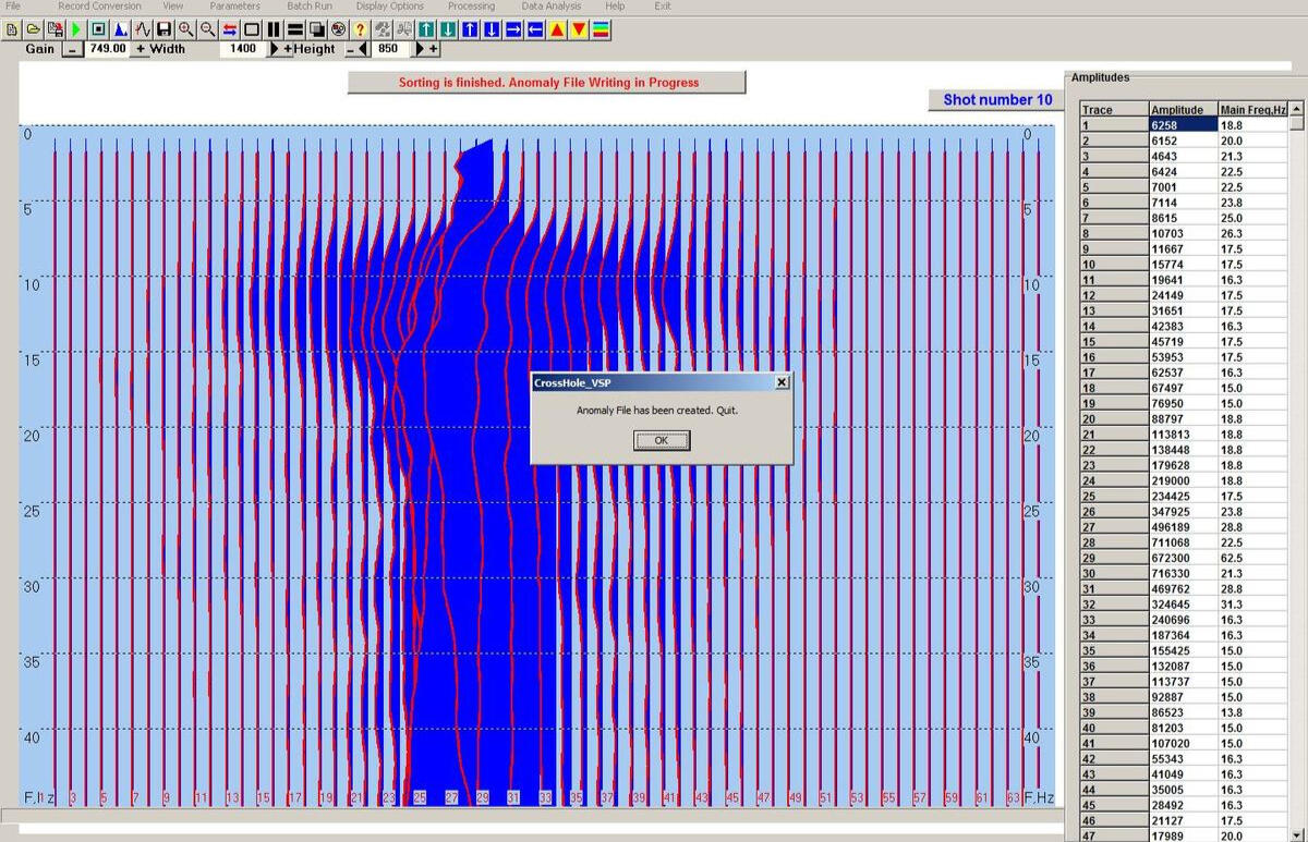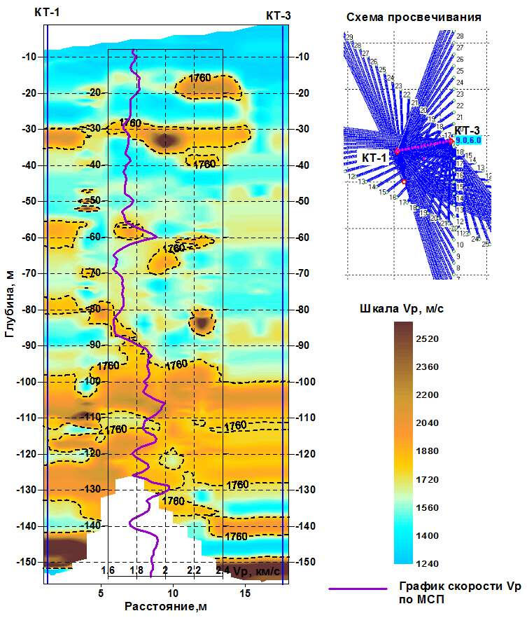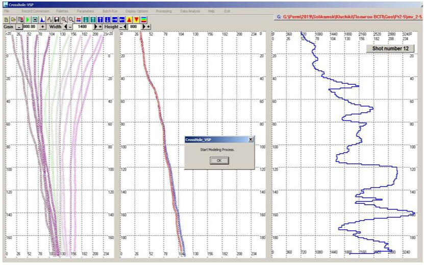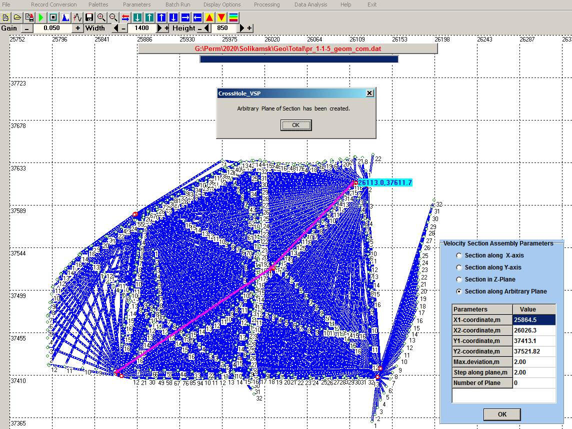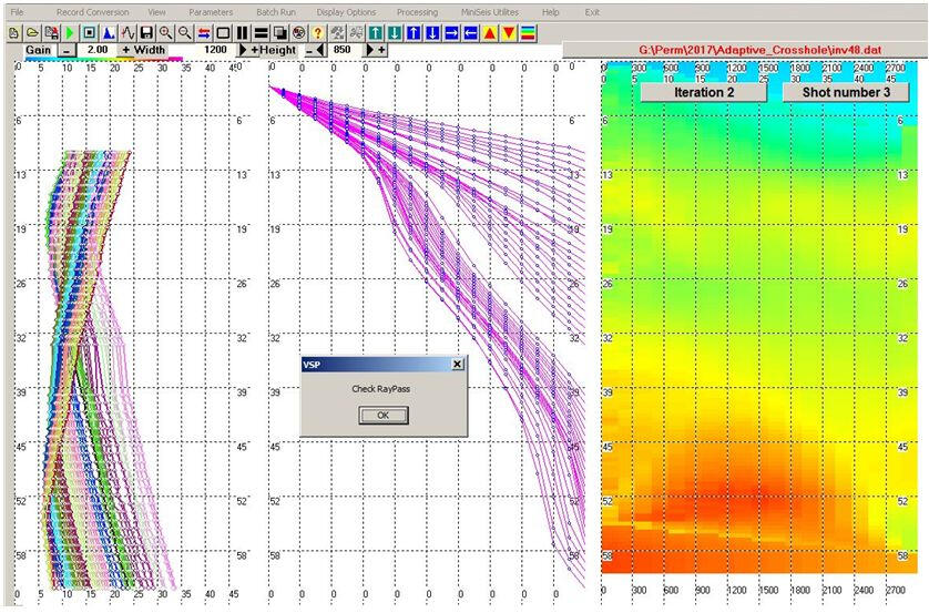 Invertētā VSP datu apstrādes programma nodrošina dažādu ierakstīto viļņu kinemātisko un dinamisko parametru aprēķinu. Konkrēti, pirmo ierašanās laiku lauka horizontālās sekcijas tiek aprēķinātas dažādiem avota atrašanās vietas līmeņiem akā. Šī lauka anomālijas ir tieša un visredzamākā pazīme lokālu neviendabīgumu klātbūtnei garenviļņu ātruma izplatīšanā augsnes masīvā.