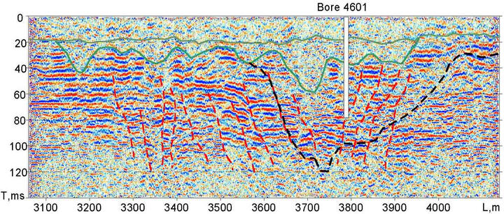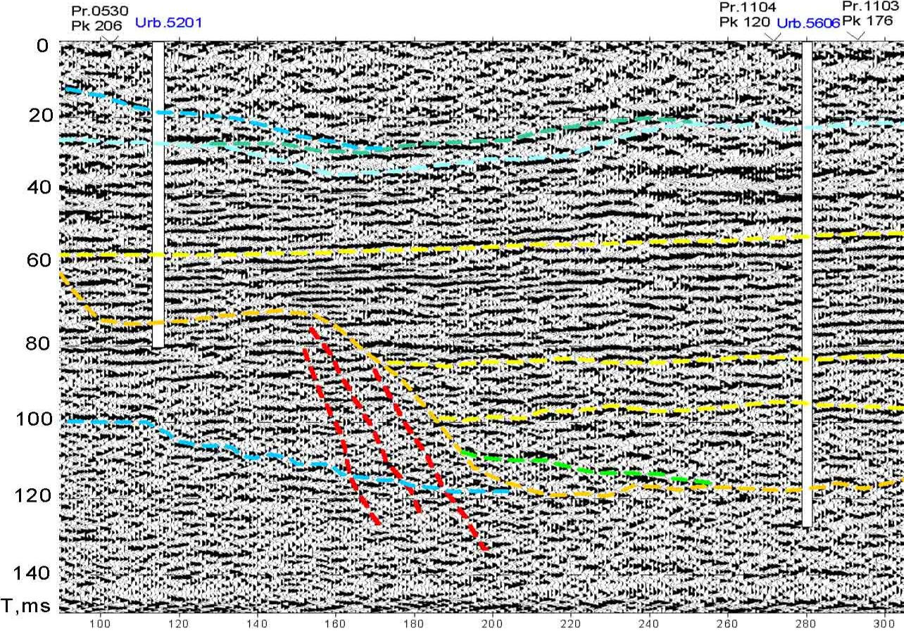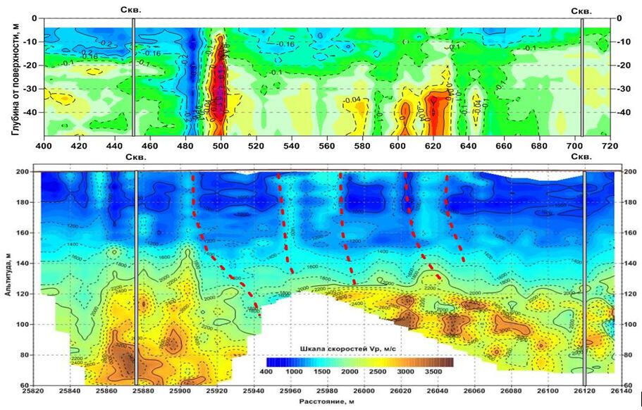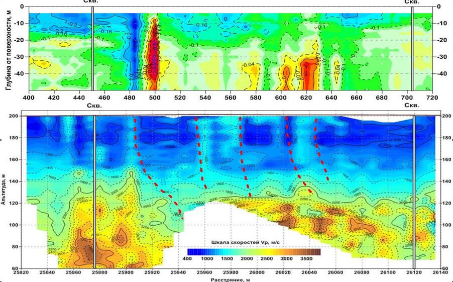 Исследование потенциально опасных зон ускоренного оседания грунтовой толщи шахтных полей методами наземной и скважиной сейсморазведки