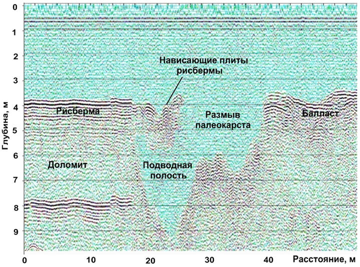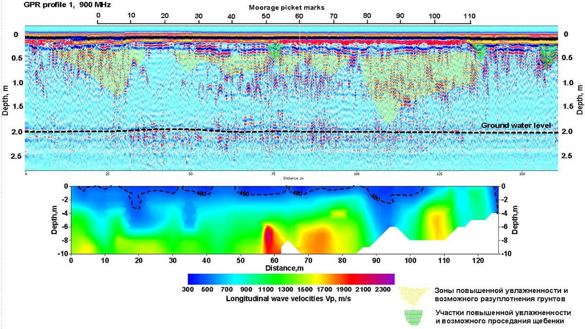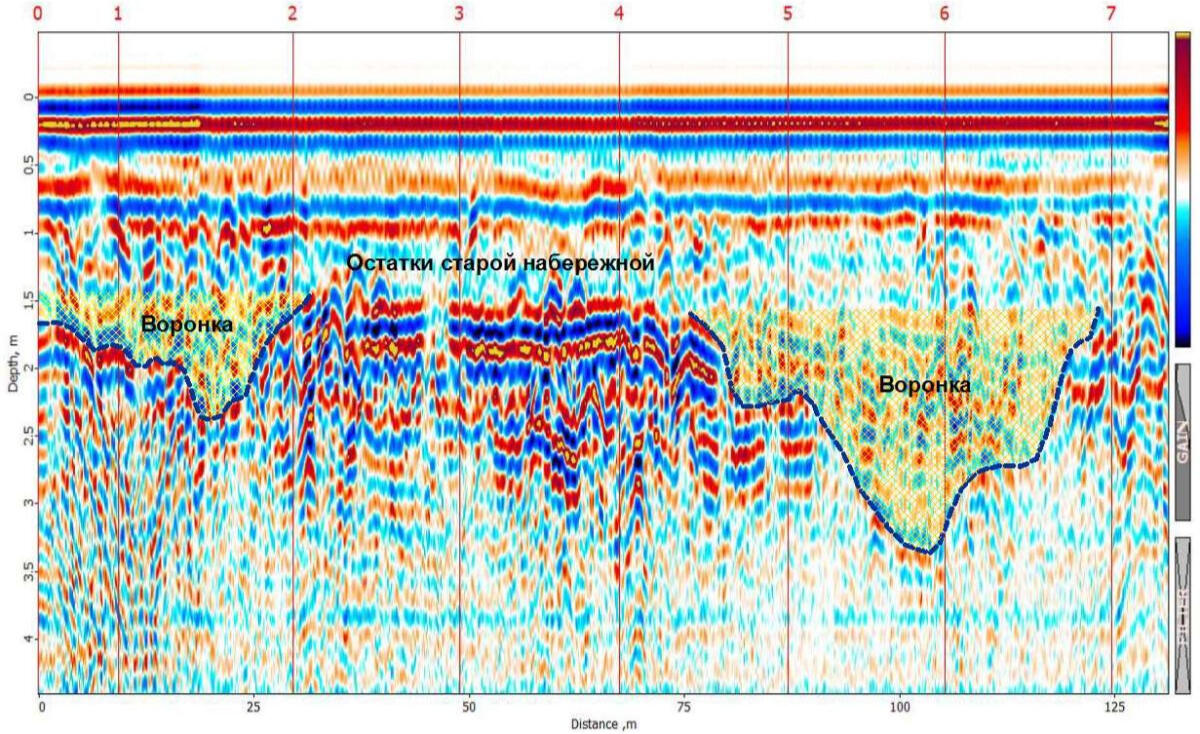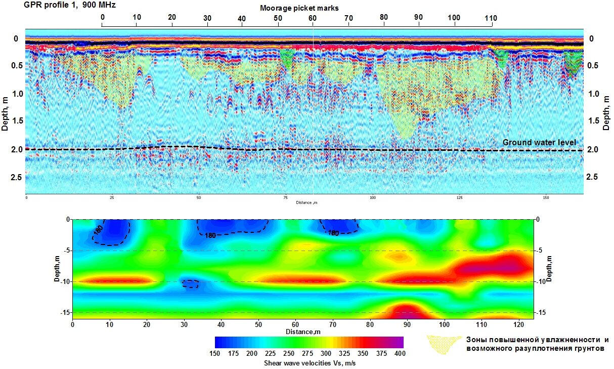 Исследование состояния грунтового массива набережной методами малоглубинной сейсмики и радиолокации