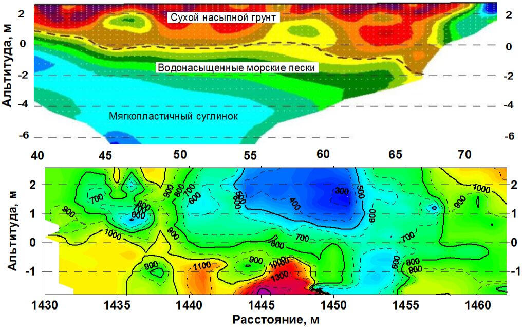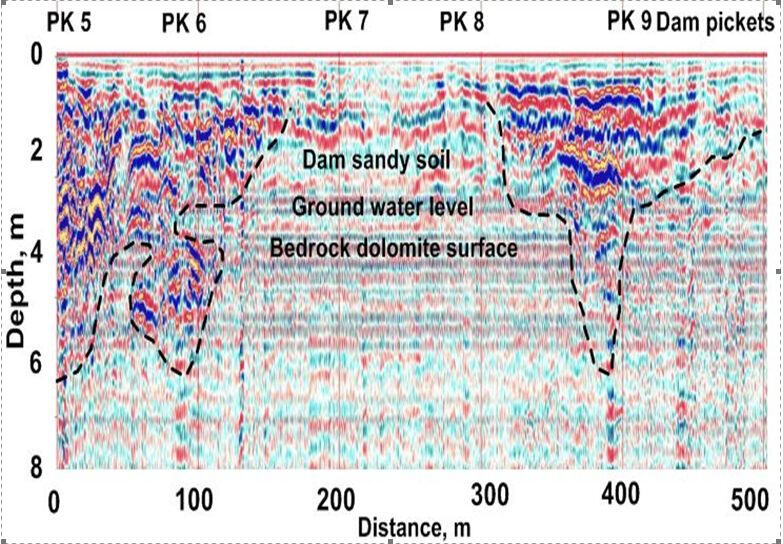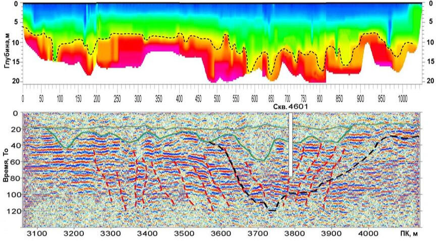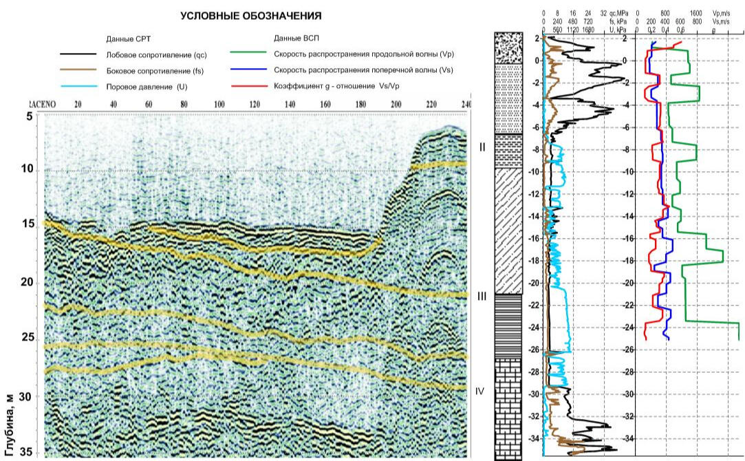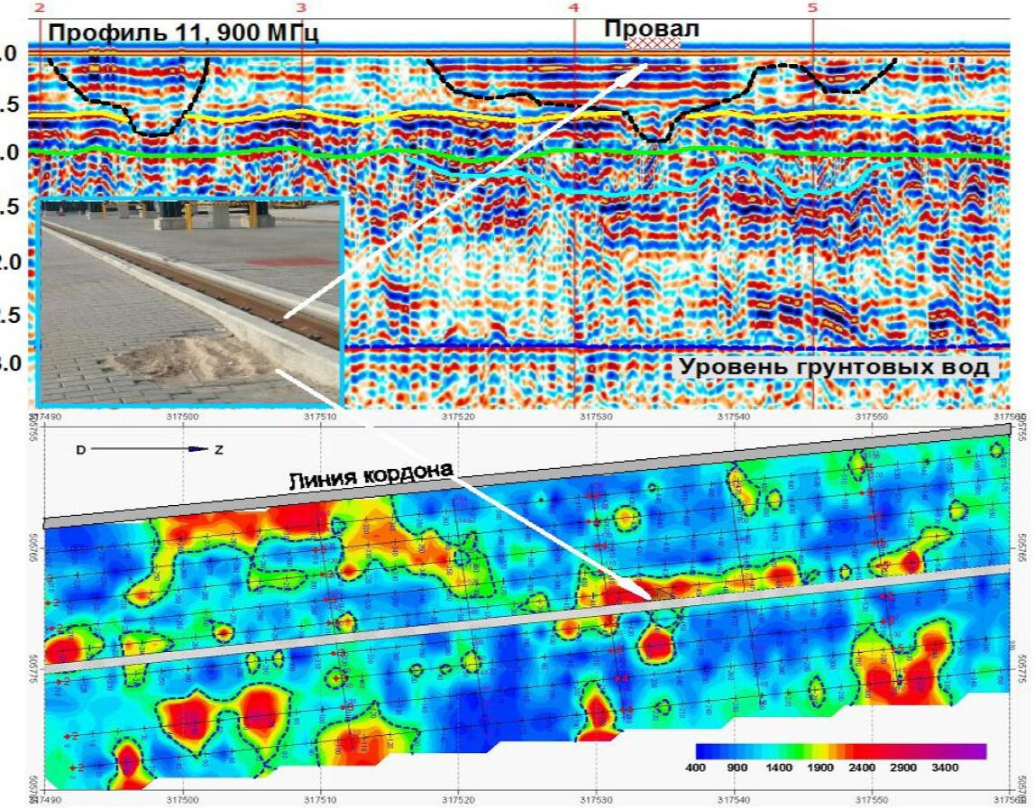 Исследование состояния грунтового массива набережной методами малоглубинной сейсмики и радиолокации