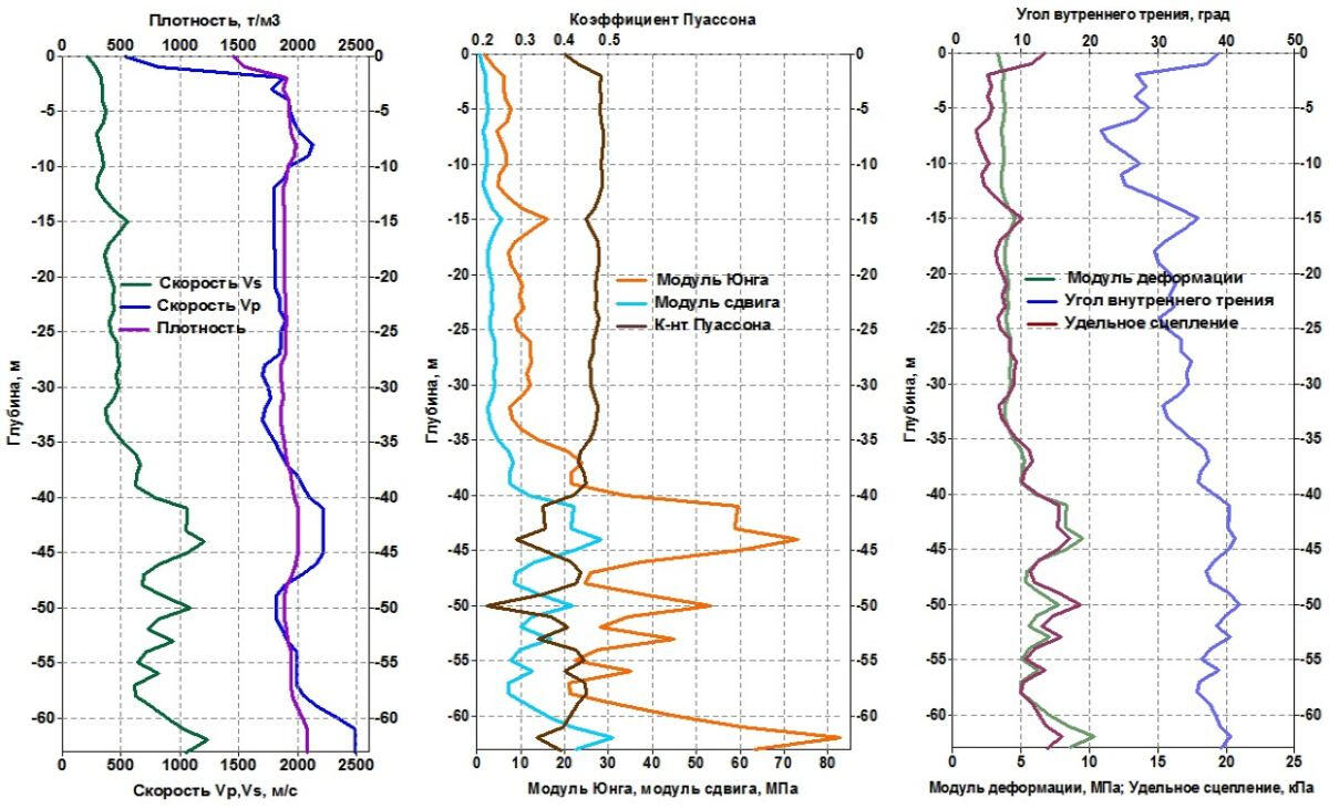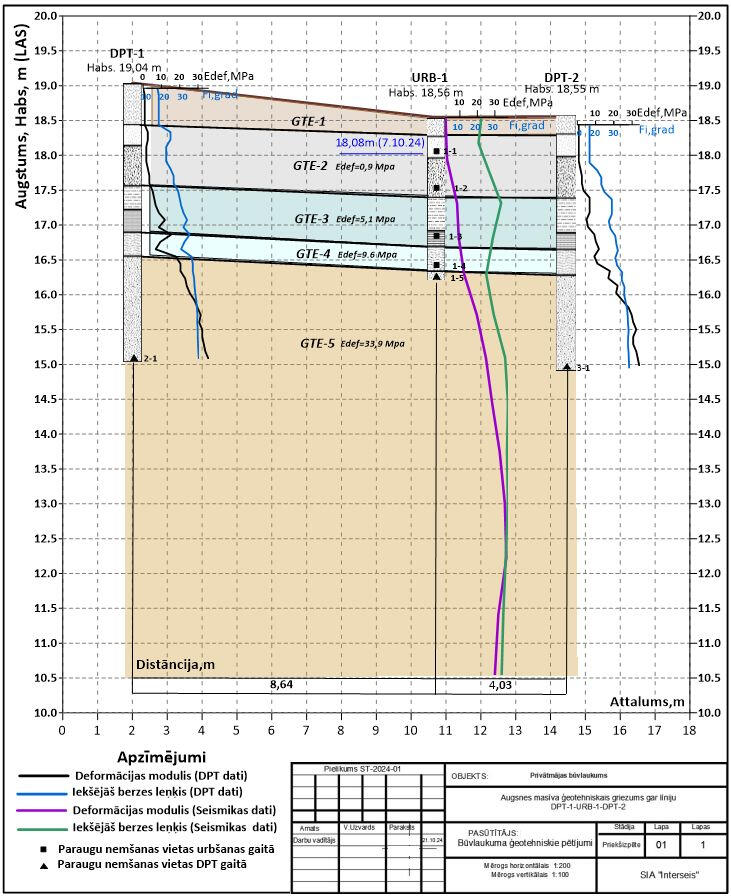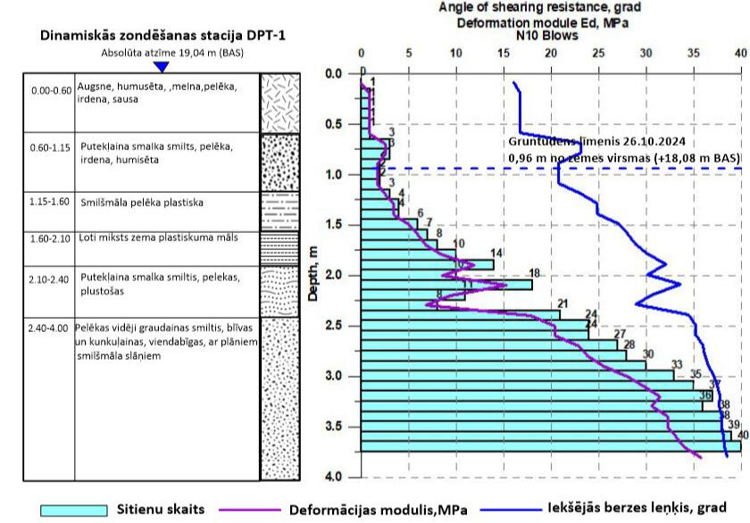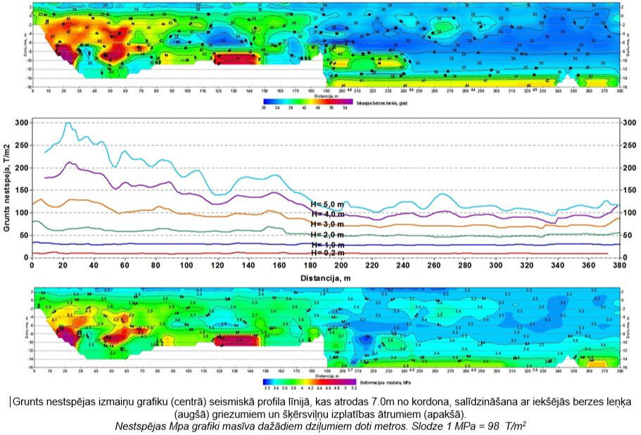 Uz VSP pamata iegūti augšņu fizikālo un mehānisko parametru grafiki līdz 60 m dziļumā