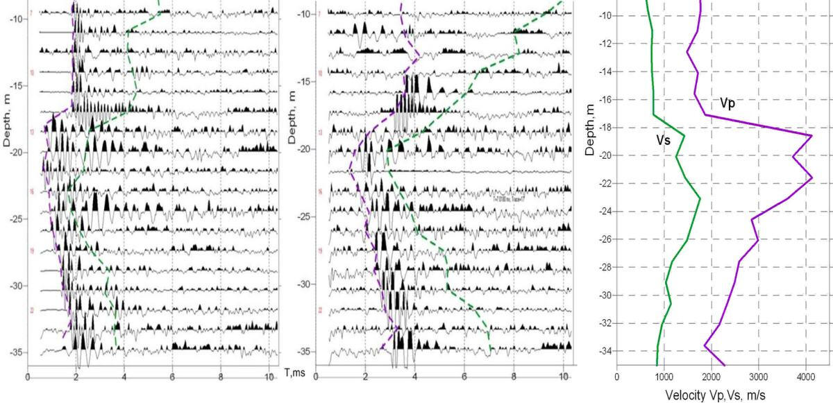 Cross-Section Velocity Characteristics Determination by Seismic Acoustic Borehole Methods