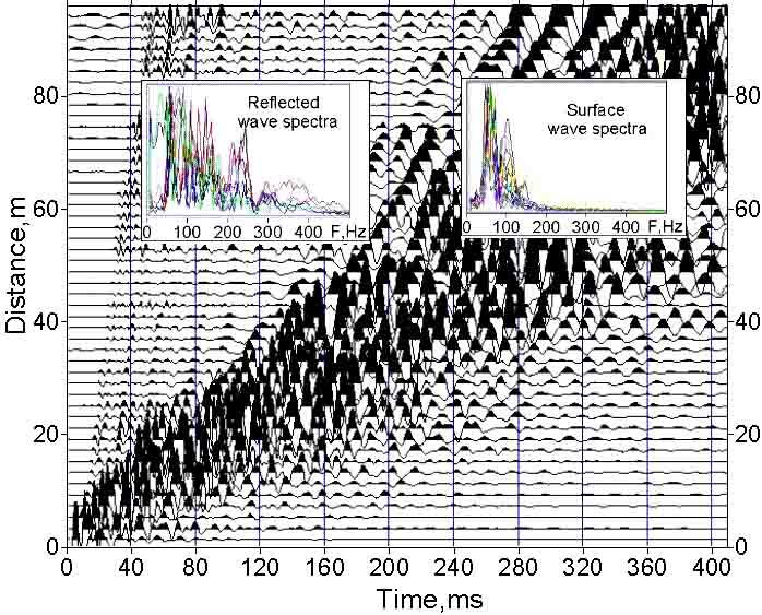 Ģeotehniskajos pētījumos parasti uzdevums ir izpētīt grunts masīva un pamatiežu īpašības līdz 40-50 m dziļumam. Bet dažreiz ir arī specifiski uzdevumi, kuru izpēte prasa 150-200 m dziļumu. Šādu uzdevumu piemērs Krievijas platformas ziemeļrietumos ir apraktās preglaciālās struktūras - ielejas kartēšana un izpēte, kas piepildītas ar morēnas nogulumiem. Līdzīgas problēmas rodas, pētot gravas paleozoiskā halogēna-karbonāta slāņos, kas piepildīti ar zema ātruma mezozoja vai kvartāra nogulumiem. Dažos gadījumos ir iespējams iegūt atstaroto signālus ar dziļumu līdz 200 m, ja par elastīgo viļņu avotu izmanto āmuru, kas sver 6-8 kg. Šis piemērs ir atstaroto viļņu ieraksts un garēviļņu ātrumu anālize ar vertikalo spektru metodei pāri apraktajai paleoielejai drenāžās urbumu ierīkošanai apsekojuma vietā Pļaviņas HES lejteces apgabalā.
