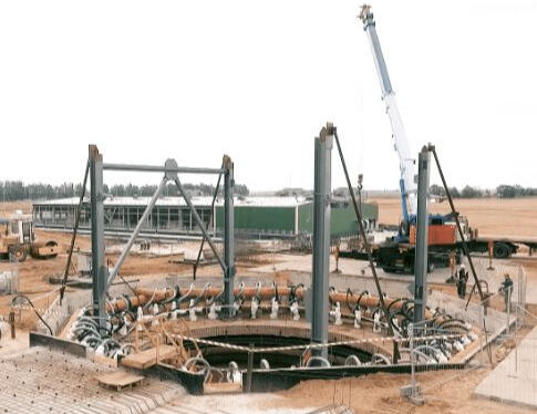 KDP laikā griezuma gar profilu caur apraktās paleoielejas malu. Drenāžas urbumu izvietojums Pļaviņas hidroelektrostacijas lejtecē